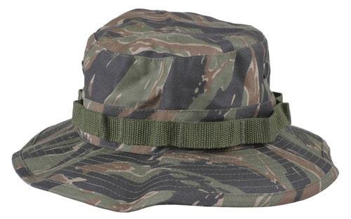 Polyester/Cotton material. Made to government specifications. Screened side vents. Branch loops. Chin straps. Perfect for fishing, hunting and everyday play. Made for durability. Approximate length of brim: 3". Tiger Strip Camouflage - boonie hat (polyester/cotton)..../ Rothco Ultra Force Boonie Men's Hat - 7 1/4 - Tiger Stripe / boonie hat